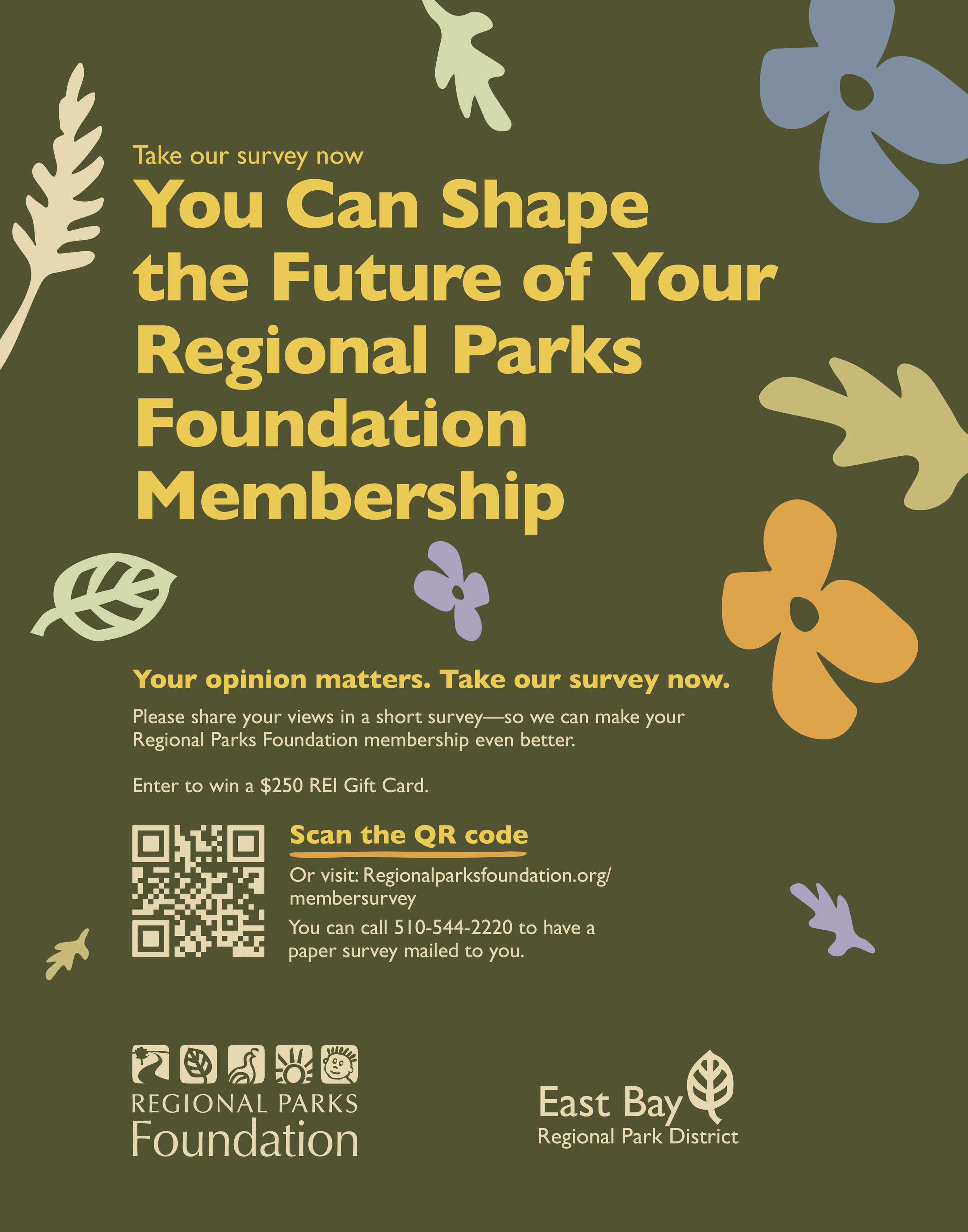 The Regional Parks Foundation helps ensure the future and quality of the parks throughout the East Bay of the San Francisco Bay Area. Our task was to learn more about their members by developing an in-depth research program. A membership survey was used to gain key insights into the membership base, assess satisfaction, and identify strategies to increase engagement and donor support. We created materials to promote the survey throughout the East Bay Regional Parks District.